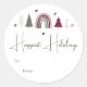Feiern Sie die Freude der Saison mit diesem boho Regenbogen und Herzen glücklichsten Urlaub vom klassischen Rundaufkleber. Das einzigartige und chic bearbeitbare Skript schafft eine Touch von Charme und Individualität. Das schlichte Design besticht durch farbenfrohe böhmische Regenbögen, Herzen und Weihnachtsbäume, die ein skurriles Winterambiente hervorrufen. Mit einem sauberen, minimalistischen Layout zeichnet sich dieser Druck durch Stil und Anmut aus.