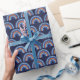 Dieses niedliche und skurrile Packpapier mit einem blauen und orangefarbenen böhmischen Regenbogen auf marineblau Hintergrund.