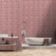 This wallpaper features a free flowing floral pattern in ivory, deep pink, and soft aqua leaves trailing across a richly textured raspberry background. The design mimics the look of hand-printed textiles on woven fabric, adding depth and vintage charm to any space. Its relaxed, organic layout brings a cottagecore boho feel that’s perfect for bedrooms, reading nooks, or creative corners. A bold yet inviting wall treatment with artisanal character.