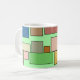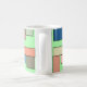 Diese Tasse ist modern gestaltet und hat Rechtecke, die an horizontale Linien in verschiedenen Größen und Bohfarben befestigt sind.