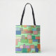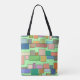 Diese Tasche hat ein boho modernen Design von Rechtecken, die an horizontale Linien in verschiedenen Größen und boho Farben befestigt.