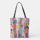 Diese Tasche hat ein boho modernen Design von Rechtecken, die an vertikalen Linien in verschiedenen Größen und Retro-Farben befestigt.