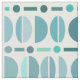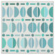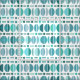 Ein Vintages, modernes Muster mit geometrischen Schalen, Formen, Punkten und Linien. Blau-Grün- und Weiß-Farbtöne.