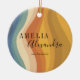 Boho Retro Script Abstrakt Wavy Lines Yellow Blue Keramik Ornament