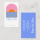 Boho 70er Jahre Stil Orange Sonnenaufgang und Berge Visitenkarte mit Retro geblüht Typografie. Stil der 60er und 70er Jahre. Geben Sie Ihren Namen, Ihre Firma und Ihre Stadt ein. Die Rückseite der Karte ist orange und weiß.