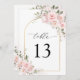 Boho Blush Rose Rose Floral Sage Vert Botanique Or Arc Élégant Numéro De Table De Mariage. Bouquet de rose bohème rose avec numéro de table d'arche en faux or modèle avec floraux élégants et blush et botaniques vertes en aquarelle imprimé à la main. L'arrière - plan couleur rose vif est parfait pour les mariages romantiques boho et les mariages floraux roses. Modèle simple et imprimable pour les mariages du printemps, de l'été, de l'automne et de l'hiver.