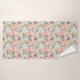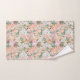 Un ensemble de serviettes de bain tendance boho floral rose pêche vert et eucalyptus. L'ensemble comprend une serviette de bain, une serviette de main et un gant de toilette.
