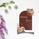 Célébrez votre journée spéciale avec ce faire-part de mariage chaleureux et rustique, conçu avec un riche arrière - plan orange brûlé, des fleurs boho moelleuses et un aménagement moderne en arc. Parfait pour les mariages de automne, ce design combine feuilles séchés, dahlias et tons terreux pour apporter une esthétique confortable et élégante à votre cérémonie. Faits saillants de la conception : ・Riche base en terre cuite/orange brûlée ・Forme d'arc moderne - populaire et tendance ・Floraux d'aquarelle aux couleurs d'automne ・Élégant mélange de polices serif et de caractères de script Idéal pour : ・Mariage de automne ・Thèmes rustiques/boho ・Mariages minimalistes et naturels ・Cérémonies extérieures