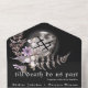 Eine gotische Hochzeit in einer Einladung mit eleganten botanischen wilden Blume in Aquarellfarbe und alten Glückssymbolen (vorne) und ewiger Liebe (innen), auf dunklem, launenhaftem Hintergrund. Die Karte enthält auch die Wahlmöglichkeiten für die Gäste, aus denen sie auswählen können. Der Gast kann den Code an die UAWG einscannen oder die Karte per Post versenden. Ideal für eine elegante dunkelgotische Hochzeit. Folgen Sie den Anweisungen, um die Einladung mit Ihren Hochzeitsdetails personalisieren. Bereiten Sie die Formulierung im Voraus in einem separaten Dokument vor, und kopieren Sie die Informationen und fügen Sie sie ein. æ, bitte für die Karo meiner gotischen Sammlung. Für Fragen und Sonderbestellungen, senden Sie uns bitte eine Nachricht via Zazzle Chat. Vielen Dank!