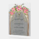 For your wedding, choose these Boho Rustic Arch Roses Western Wedding Welcome Acrylic Sign, featuring an elegant watercolor arch decorated with beautiful pink roses and deer antlers.