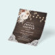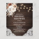 Die rustikale Brautdusche Boho lädt mit Glaskeramikkrügen mit Leuchten, beige-weiße Blume und Pampa-Gras auf Holzfußboden zum Verweilen ein.