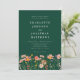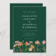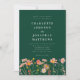 Boho chic Blumen Fall grüne Hochzeitseinladung mit Aquarellfarben Wildblume Weiden handgemalte Blume. Diese elegante, dunkelgrüne Hochzeitsfeier mit einer atemberaubenden Mischung aus Herbstcharme und eleganter Eleganz. Dieses Aquarelldesign zeigt handbemalte Wildblumen auf einer Gartenwiese mit einer reichen Palette an Bronzefarben, Terrakotta, Braun, lila, gelben, korallenfarbenen, gebrannten Nummern, Pfirsich und weichem Rosa, was die Wärme und Schönheit der Herbssaison auf einem smaragdgrünen Hintergrund einfängt. Elegante, moderne Typografie mit einem dunkelgrünen Hintergrund verleiht der Touch eine raffinierte Note, während die skurrilen Blumen einen persönlichen, boho Flair zu Ihrer Einladung bringen. Mit einfach zu bedienenden Vorlagen können Sie alle Ihre notwendigen Hochzeitsdetails mühelos anpassen. Diese Einladung wurde mit originalen Kunstwerken von Catherine Sweetman entworfen und vereint wunderbar den Charme der Natur mit zeitloser Eleganz und schafft so den perfekten Ton für Ihre unvergessliche Feier. Lass diese Einladung, um Ihre Gäste in die Wärme und Schönheit Ihres besonderen Tages willkommen zu heißen.