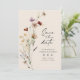 Diese stilvolle und elegante rett-the-date-Ankündigungskarte verfügt über wunderschöne handbemalte Aquarellfarben-Wildblumen, die als hübscher Kranz für den Frühling, den Sommer oder Hochzeiten im Herbst eingerichtet sind. Finden Sie passende Artikel in der Boho Wildblume Wedding Collection.