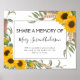 Laden Sie Ihre Gäste ein, sich ein Gedächtnis an Ihren Lieben zu teilen, indem Sie dieses Schild und die passende Karte auf einem Tisch auf der Beerdigung platzieren, das Leben feiern oder geweckt. Die speziellen Erinnerungen können dann als Keepsar in einem passenden Binder oder Speicherkasten abgelegt werden.