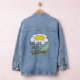 Un design simple de fleur marguerite avec des pétales blancs donne à cette mariée d'être "future Madame" veste denim une hippie rétro, moderne, ambiance bohème. Le texte personnalisé en fait un accessoire de tenue amusant pour les photoshoots fiançailles, les fêtes, les week-ends de bachelorette, et même la journée de photos mariages pour la mariée insouciante.