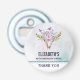 Zum Geburtstag ein Flaschenöffner mit türkisfarbenem und pastellfarbenem Aquarell. Ein schicker Tierskull mit Blumenstrauß auf dem Kopf und kleinen Schmetterlingen, die herumflattern. Ein niedlicher Zierrahmen mit kleinen Teardrop-Formen in hellblau.