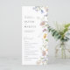 Boho Spring Whimsical Fleur sauvage Elegant Simple Wedding Programme Modèle. Bouquet fleur sauvage de style bohémien modèle de programme minimaliste avec pastel coloré floral et boho simple sauge botanique vert botanique dans l'aquarelle imprimée à la main. Modèle de programme pour les mariages du printemps, de l'été, de l'automne et de l'hiver.