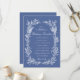 Erhöhen Sie das Erlebnis Ihrer Gäste mit dieser anspruchsvollen, marineblauen Karte mit Blumenkranz-Hochzeitszeitplan, die einen knackigen, weißen, handgezeichneten botanischen Rahmen mit wilden Blüten und Blättern zeigt, gepaart mit einer klassischen Schleifenverzierung und einem individuellen Monogramm vor einem reichen Kornblumenblau-Hintergrund. Diese Hochzeits-Itinerary-Karte ist die perfekte Möglichkeit, Ihre Gäste über den Zeitplan Ihres besonderen Tages zu informieren und gleichzeitig Ihre passenden, marineblauen Wildblumen-Hochzeitseinladungen, Menükarten und Detailkarten für eine zusammenhängende, elegante Schreibwarenserie zu ergänzen.