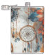 Abstraktes Gemälde im Boho-Stil mit Traumfängern und Blume.