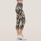 Boho Stilfedern in Korallenrosa, hellblau und goldgelb schweben auf einem dunklen Hintergrund auf diesem Paar schicke Capri-Leggings. Kleine Konfetti Flecken aus Gold sorgen für zusätzliches Interesse.