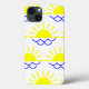 Dieses Handy Gehäuse hat ein Boho Design von halben Kreisen mit Linien zu machen eine Sonne und Jakobsmuscheln, um Wasser zu machen.