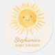Dieser niedliche, geschlechtsneutrale Babyduschaufkleber ist mit einer gelben Aquarellsonne und einer stylischen Typografie auf weichem Cremehintergrund ausgestattet. Einfach anpassbar. Original Wasserfarbe © Michele Davies.