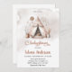 Invitations amis et famille pour célébrer votre petit avec cette magnifique invitation de baby shower boho. Dotée d'un teepee fantaisiste orné de plumes, de fleurs et d'accents tribaux dans des tons doux et bleus et neutres, cette invitation capture une atmosphère calme et cosy. Idéal pour une petite fille ou une célébration sans distinction de genre, ce design est à la fois moderne et chaleureux. Personnalisez votre événement en quelques minutes - un choix idéal pour les douches à thème bohème.