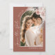 Dieses Boho Terracotta Pampas Grass Foto Wedding Save the Date Card wird Ihnen helfen, die gute Nachricht von Ihrer Verlobung und bevorstehenden Hochzeit zu teilen. Dieser minimalistische Stil verfügt über zwei Fotos auf Terracotta-Erdton-Hintergrund mit einem Bogen-Design und modernen Drehbuch-Schriftart. Schöne Aquarellfloralen mit Papasgras und Eukalyptus prägen die Karte. Personalisieren Sie mit Ihren eigenen Fotos und Details über Ihre Hochzeit.
