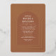 Ein einzigartiges Design mit mehreren zarten Bogen Linien rund um Ihre Hochzeitseinladung Informationen in vergoldeten, über eine Terrakotta / Rost Farbe gestempelt. Auf der Rückseite fügen Sie Ihre Hochzeitsdetails und uAwg Informationen.