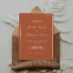 Ideal für Hochzeiten im Herbst und für Ihre Hochzeit. Diese Einladung verkörpert den Geist einer Hochzeit des Westerns, ideal für eine Hochzeit auf dem Lande oder eine Wüstenhochzeit. Die wunderschöne Mischung aus Salbei- und Terracotta Hochzeitsfarben ergänzt jedes Terrakotta Hochzeitsthema. Lassen Sie sich von Hochzeit im Herbst-Ideen und verbrannten Orangenhochzeiten mit unserem atemberaubenden Orangen Hochzeitsdesign inspiriert. Feiern Sie Ihre boho terracotta Hochzeit im Stil!