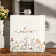 Die personalisierte Bohoboldflasche aus Terrakotta mit Wildblumen und einem Monogramm ist perfekt für ein stilvolles, einzigartiges Geschenk.