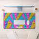 Trompe L'oeil Boho Patchwork Quilt Inspiriert Muster. Personalisieren Sie den Namen unten über weißem Rechteck.