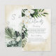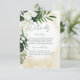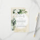 Dieses Design der Hochzeitskunst zeichnet sich durch eine schöne, üppige tropische Vegetation und weiße Blumen auf einem weichen, gelben Sand Aquarell aus. Ideal für die Ziel- oder Strandhochzeit. Erstellt von der einfachen Farmhouse Press.