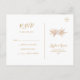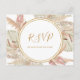 Ce boho tropical botanique | mariage La carte postale RSVP est parfaite pour votre élégant mariage d'or rose, vert, pêche et à fleurs rustiques. Le design présente un cadre or ou un bouquet avec de l'herbe rose pâle moderne, de la sauge simple, de l'ivoire, une feuille de palmier à champagne et une végétation de plage classique. Les fleurs peuvent inclure rose rose et orchidée. Le design est idéal pour un classicisme vintage en terre cuite, beige, rouille, hiver, printemps, mariage de automne. Veuillez trouver d'autres articles de papeterie mariage correspondants ou coordonnés dans le reste de la collection.