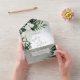 MIT ODER OHNE ABENDESSEN. AUCH MIT EINEM QR-CODE IM UAWG BEREICH VERFÜGBAR. Dieses Design besticht durch eine wunderschöne tropische Vegetation und weiße Blumen auf einem sanften grünen Aquarell. Ideal für die Ziel- oder Strandhochzeit. Erstellt von der einfachen Farmhouse Press.
