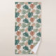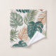 This bathroom towel set features a pattern of tropical monstera and palm leaves in subtle autumn shades of green and rust on a beige background.