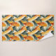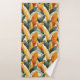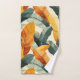 This bathroom towel set features a lush tropical boho pattern of banana palm leaves in rich autumn earth tones of green, gold and rust.