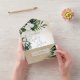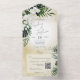 DISPONIBLE AVEC OU SANS OPTIONS DE DÎNER AU LIEU D'UN CODE QR. Ce design présente une belle végétation tropicale luxuriante et des fleurs blanches sur un arrière - plan d'aquarelle jaune sable doux. Changez le code QR sur votre site Web mariage ou sur tout autre site que les invités devraient visiter. Parfait pour la destination ou le mariage sur la plage. Créé par Simply Farmhouse Press.