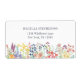 Ein elegantes Versandlabel mit klassisch weißem Hintergrund und am unteren Rand eine farbenfrohe Grenze von Aquarellfeder-Wildblumen. Die moderne, graue Typografie lässt sich einfach mit Ihrem Namen und Ihren Kontaktdaten anpassen.