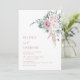 This elegant contemporary wedding invitation features watercolor painted blush boho roses flowers and greenery on a white background.
