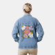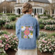 Un design moderne ondulé de fleur marguerite avec des fleurs blanches, lilas et coraux donne à cette veste denim une ambiance rétro, hippie moderne, bohème. Le design peut être modifié de façon à ce que chaque élément coloré puisse être modifié pour s'adapter à votre style personnel et le rendre complètement unique pour vous.