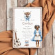 Bienvenue à votre petit buckaroo avec cette adorable invitation de baby shower occidental boho. Ce design présente une illustration très émouvante d'une mère enceinte en bottes cardiganes et cowboy bleues, à côté d'une guitare acoustique rustique et de petites bottes cowboy, le tout face à un arrière - plan confortable. Les touches florifères bleues apportent une touche d'élégance douce, créant une invitation unique et mémorable à votre événement spécial. C'est un choix idéal pour les parents à la recherche d'une façon unique et élégante d'annoncer leur baby shower.