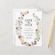 Diese stilvolle und elegante Boho White Save the Date Postcard besticht durch wunderschöne handbemalte Aquarellfarben-Wildblumen in einem hübschen Kranz. Finden Sie passende Artikel in der White Boho Wildblume Wedding Collection.