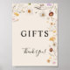 Das Geschenkschild zeichnet sich durch einen bohenhaften Stil mit Blumenkunst und neutralen Erden- und Beigetönen aus.