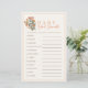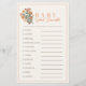 Die Babyduschkarte Boho & Retro "Baby word cramble" mit cremefarbenem Hintergrund und Retro-Wildblume-Bouquet in Rosa und Orange. Auf der Rückseite befindet sich ein cremefarbener Hintergrund mit Wildblumen. Personalisieren Sie Ihre Bedürfnisse. Mehr passende Produkte finden Sie in meinem Geschäft. Antworten: 1. ABBILDUNG 2. SCHNULLER 3. STROLLER 4. UNTERSUCHTE TIERE 5. KÖRPER 6. TEDDY BEAR 7. FLASCHE 8. KINDERZIMMER 9. FLASCHE 10. FORMEL 11. MILCH 12 KRADLE