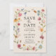 Boho Wildblumen speichern die Datumskarten. Diese stilvolle und elegante Hochzeitseinladung besticht durch herrliche, handbemalte Aquarellfarben-Wildblumen. Finden Sie passende Artikel in der White Wildblume Dreams Collection.