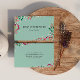 Boho Visitenkarte in Blassrobinblau mit handgezeichnet Wildblumen in Rosa, Violett, Pfirsich und Weiß, auch Beeren und Blätter.