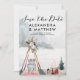 Boho Winter Woodland Holiday Photo Save the Date - présente un beau paysage forestier boho et une superbe typographie script. La photo pleine page du marié et de la mariée figure au verso de la carte. Notre modèle de haute qualité vous permet de remplacer facilement notre texte par le vôtre.