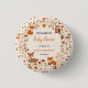 Shop a boho woodland baby shower button with cute forest animals and rustic tones. Perfect as a fun keepsake or party accessory.