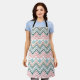 Diese Schürze hat ein robustes Design von Linien, Punkten und Diamantformen in Retroblau, Aqua, Rosa und Orange.